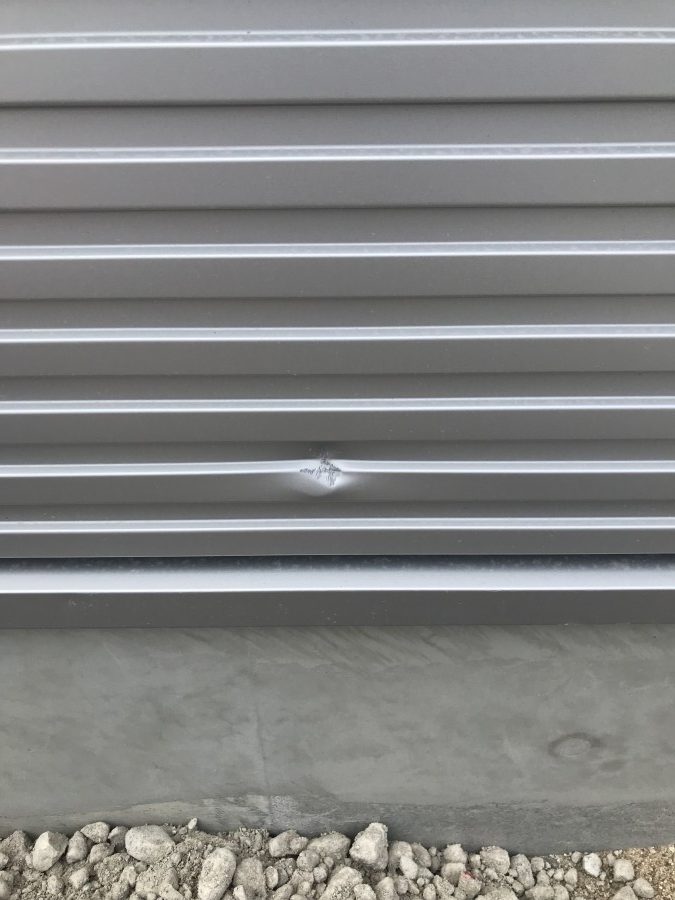既存のカーポート柱を車でこすったらしく、角がえぐれてます。