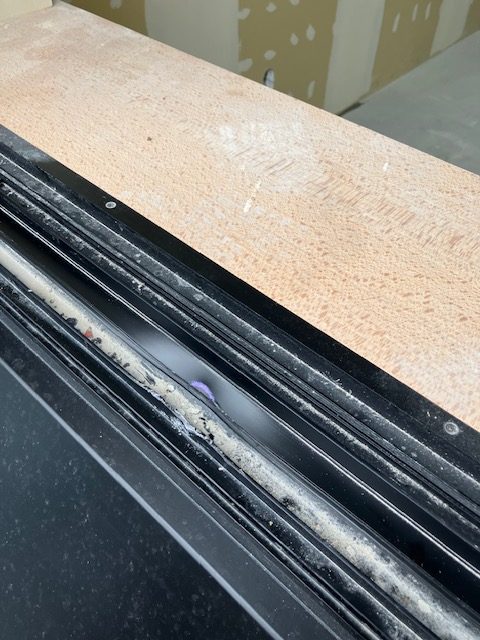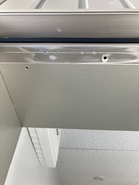 アルミ方立に間違って付けてしまった部材を取り外した後のビス穴です。
