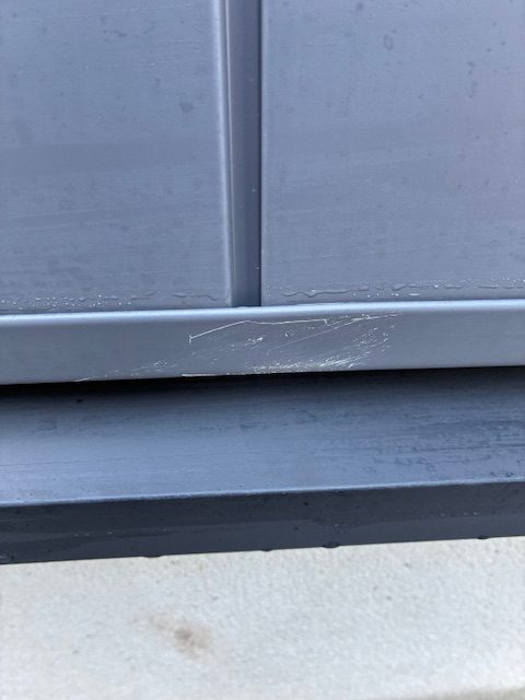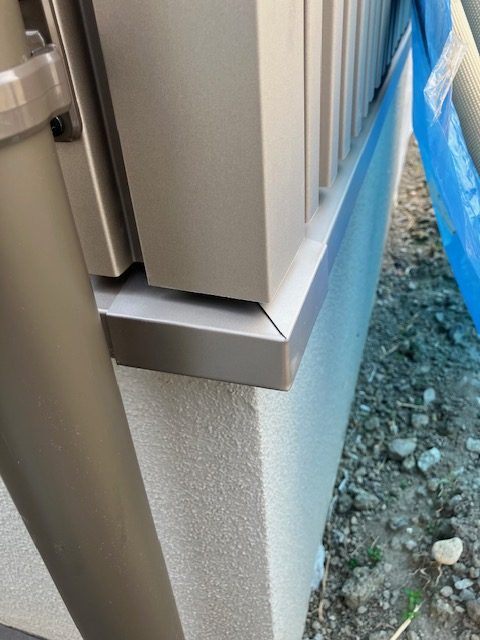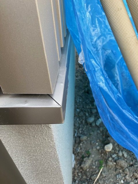 アルミ土台水切りのコーナー材に下から膨れあがった部分の補修になります。