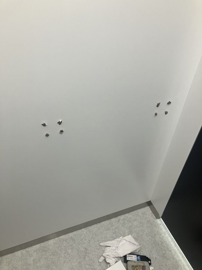 トイレの壁 隣のブースからビス8本突き抜け